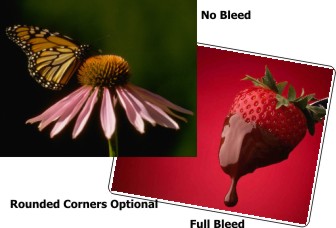 documents. Lamination available in full bleed or no bleed. Rounded corners are