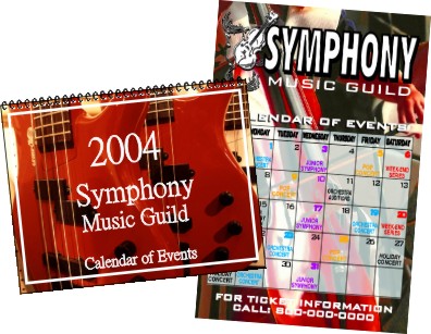 Calendars are 11" x 17" flat, and either bifolded and saddle stitched to 8.5" x 11" or wire bound to 8.5" x 11". Smaller sizes available.