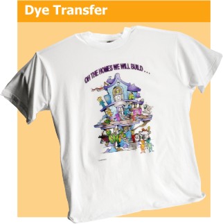 photo quality images with thousands of colors directly on t-shirts and sweat shirts. This is an ideal process for short run projects where process printing technology is required. Each image is overprinted with our exclusive Super Guard Clear Coat to improve image stability and washability. Maximum image area 10.5” x 13.0”. Dye Transfer is available on white and natural garments only. Both 100% and 50/50 White or Natural T-Shirts are recommended for dye transfer. White or Natural Fleece will result in some loss of image quality due to the surface of the material. Customers may submit their designed art to be used by Summit. Please consult the Digitally Submitted Artwork and Digital Files page for more details on supported file types and software.