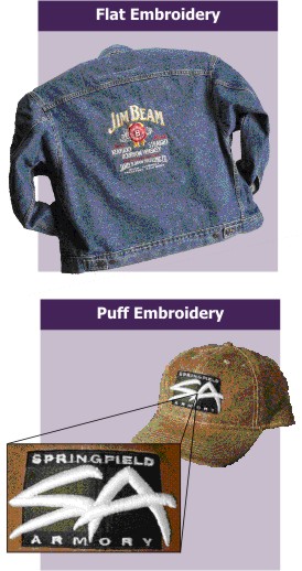 Embroidery can be applied to just about anything made of fabric. Traditional items such as polo shirts, jackets, caps, visors, shirts, golf towels, bags, uniforms. Unusual items such as luggage, airplane seats, bandanas, socks, sweatbands, table cloths, and table runners. Constructed or unconstructed, chances are we can embroider it.
